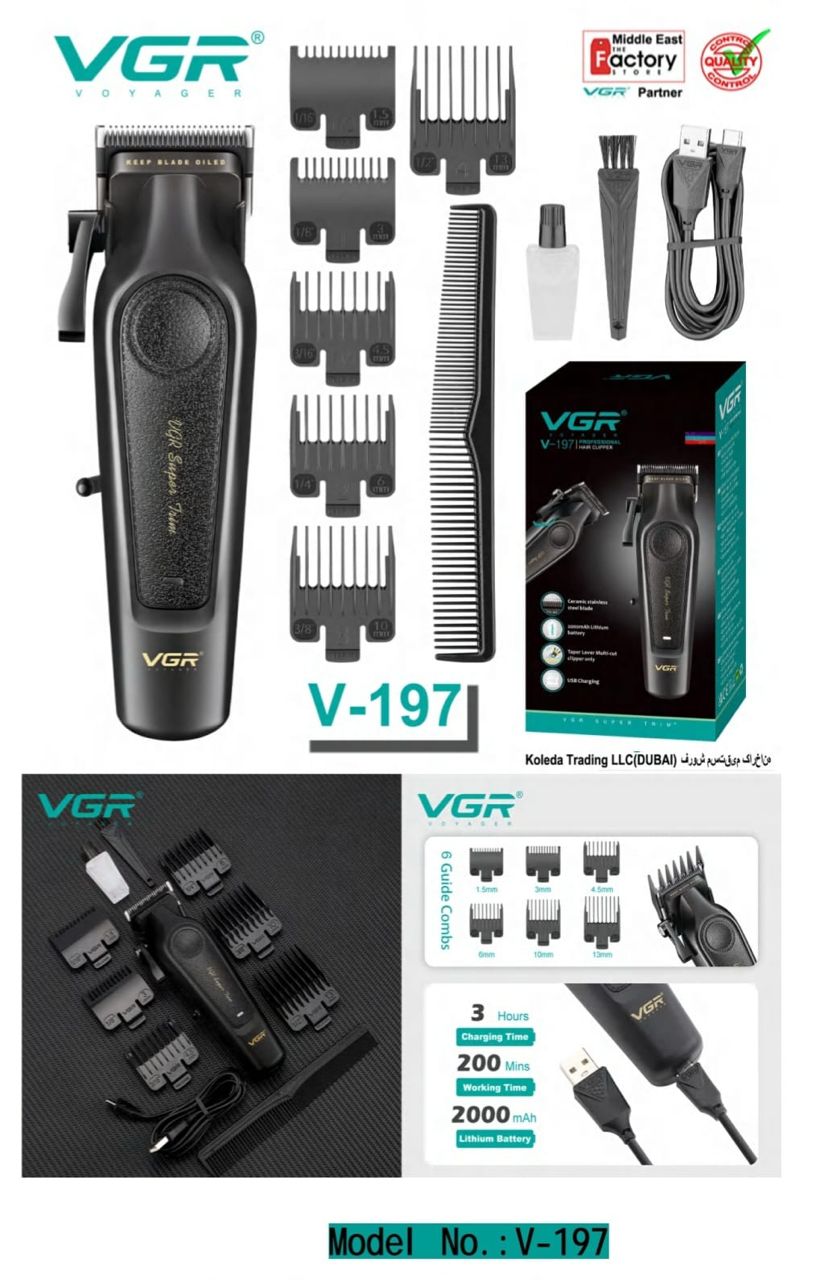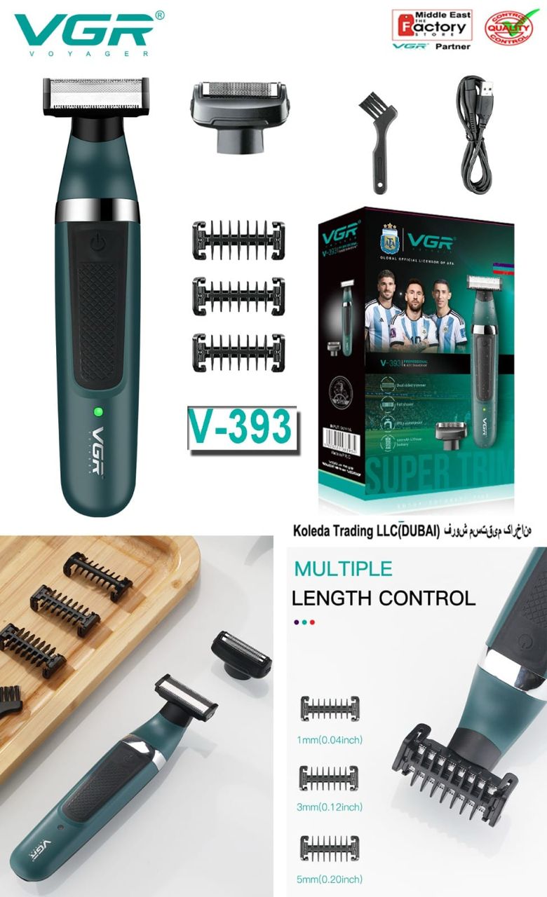 حجم زن سر و صورت با تیغه استیل و دارای شانهای مختلف با همراه داشتن روغن و بروس تمیزکننده مارک وی جی ار